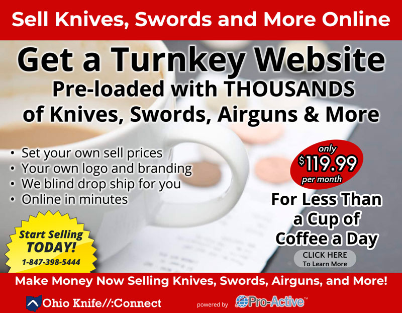 Ohio Knife is proud to offer in partnership with Pro-Active Websites, a world-class eCommerce that features Ohio Knife and Tools full catalog of knives, swords, airguns, and more.